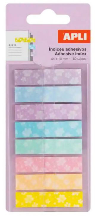 Комплект от 160 самозалепващи индекси / листчета Apli Happy Idex Floral с флорален десен е едно практично и декоративно решение за организиране и класифициране на документи, книги и файлове.