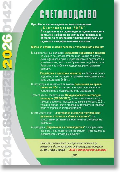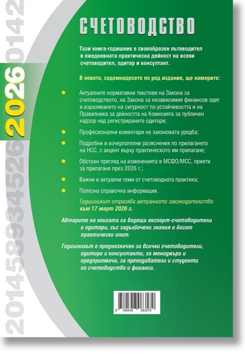 Книгата е съобразена със счетоводното и данъчното законодателство, актуално към 17 март 2026 г.