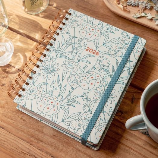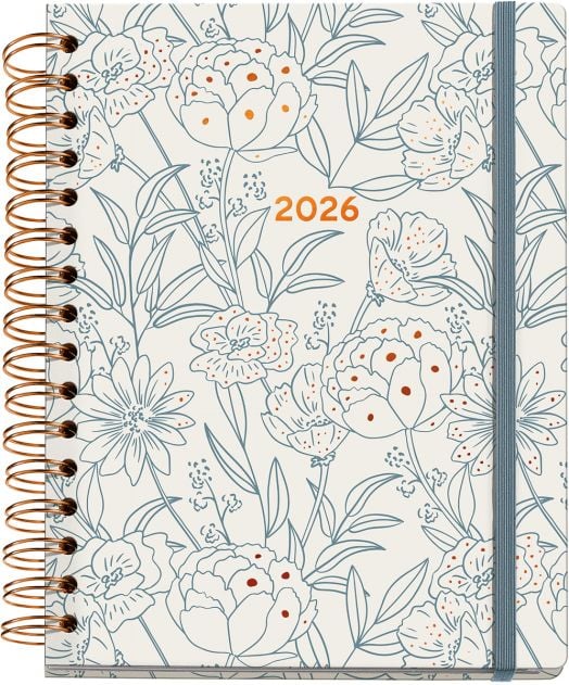 Класически бележник - органайзер Miquelrius Arno Dufour Bouquet за 2026 година с твърди корици, спирала и годишно планиране — една седмица на две страници.
