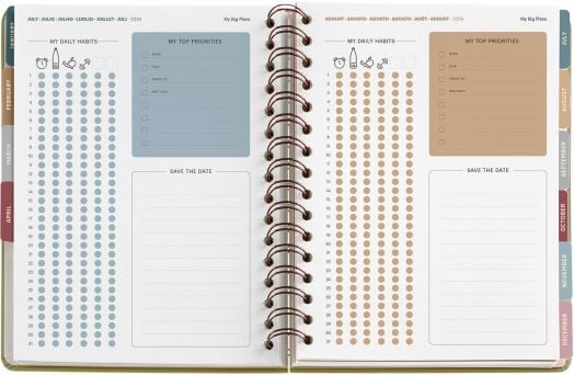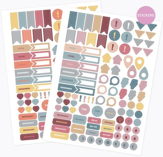Съдържа също полезни страници за следене на здравословни навици, приоритети и важни дати/събития, два листа с тематични стикери, с които можете да добавите личен стил и удобство в планирането