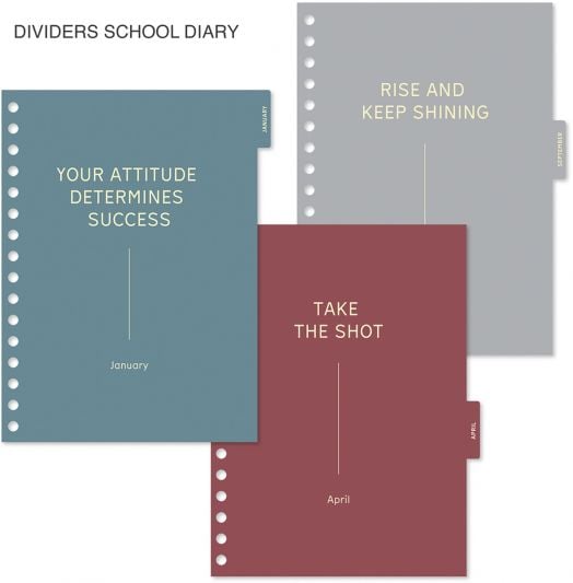 С 12 ламинирани тематични разделителя (за всеки месец от годината) с различни вдъхновяващи цитати