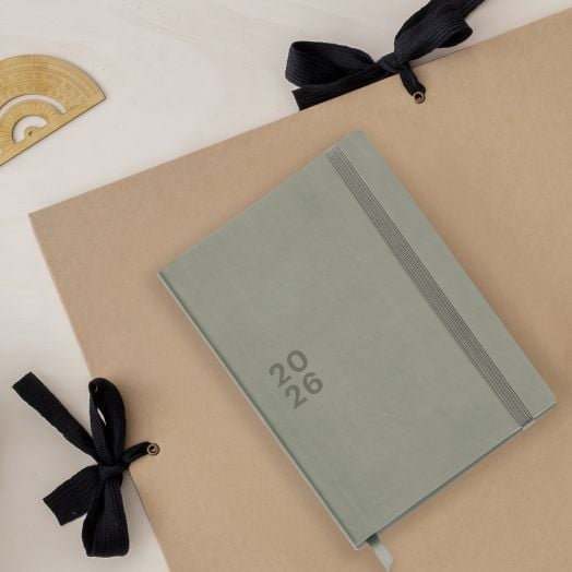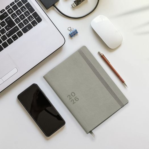 Класически бележник - органайзер Miquelrius Back To Basics Gris за 2026 година с меки и гъвкави кожени корици.