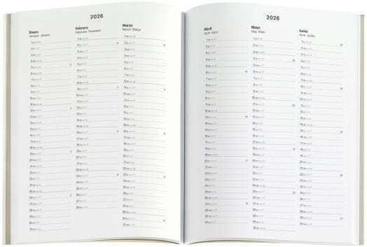 Страници за лична информация, 3-годишен календар, месечен планер, допълнителни листа за бележки и адреси / телефони.