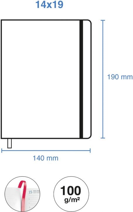 С допълнително затваряне с ластик, който да придържа всички записки подредени и на място и с текстилна лента, която служи за отбелязване.
