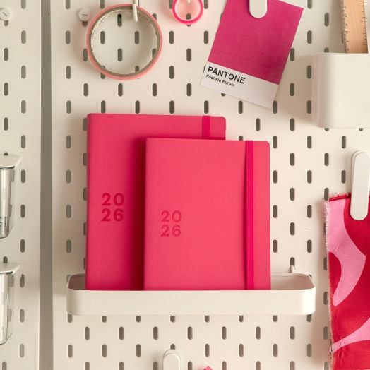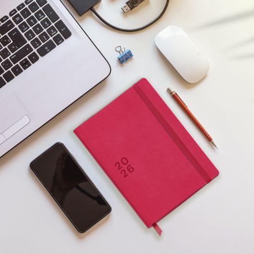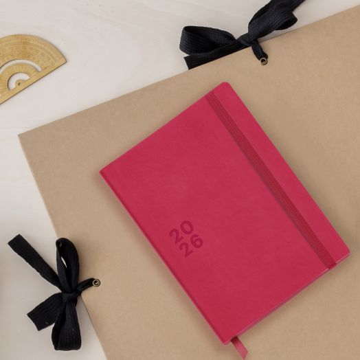 Класически бележник - органайзер Miquelrius Back To Basics Magenta за 2026 година с меки и гъвкави кожени корици.