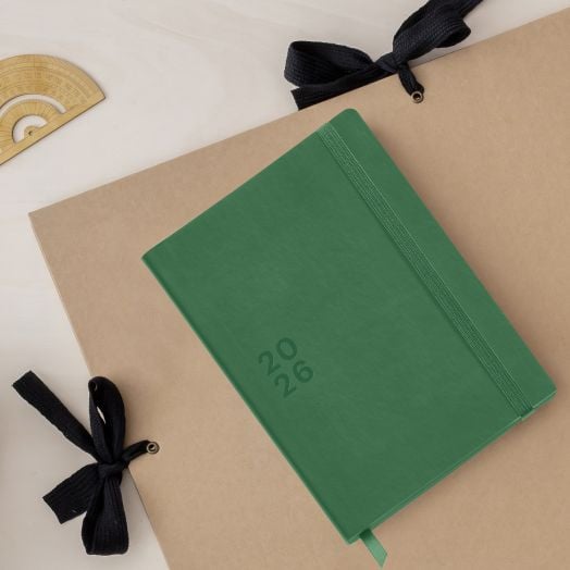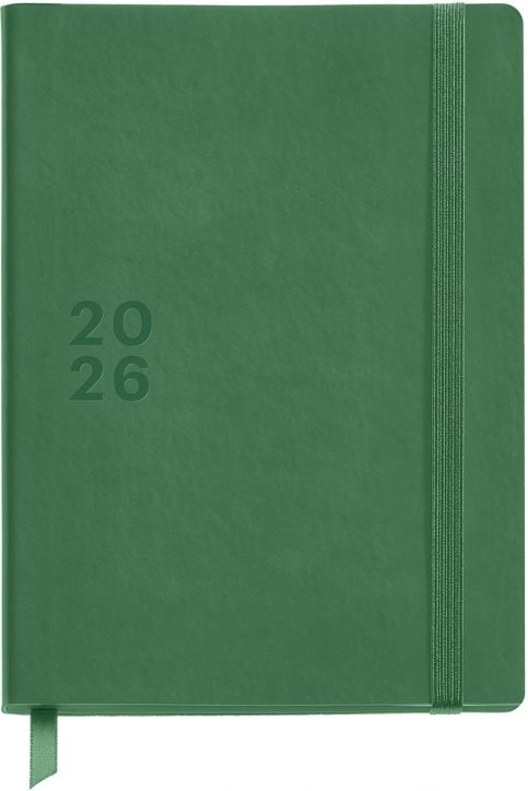 Класически бележник - органайзер Miquelrius Back To Basics Verde за 2026 година с меки и гъвкави кожени корици.