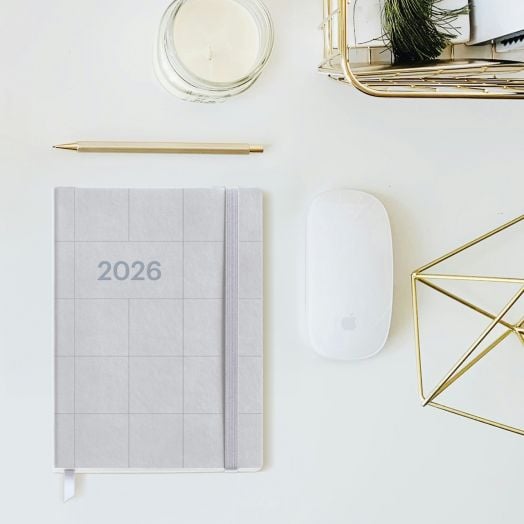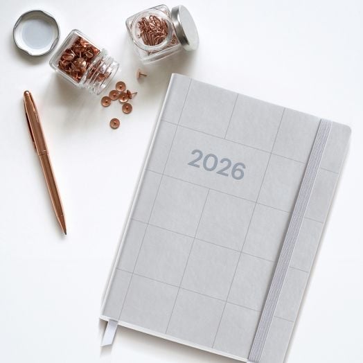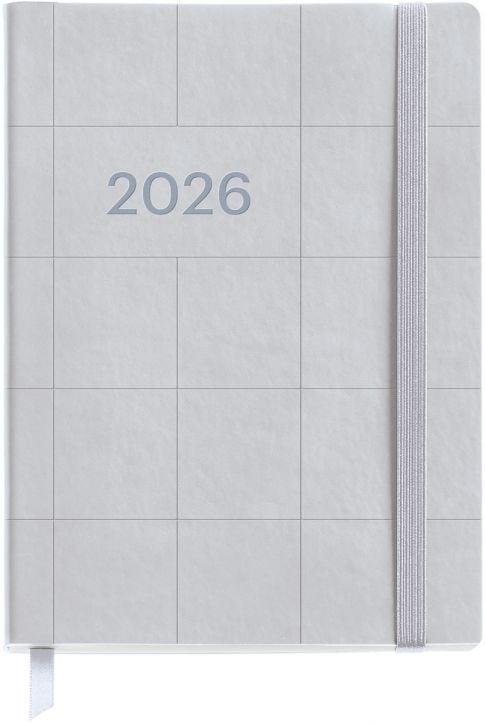 Класически бележник - органайзер Miquelrius Basic Cuadros Silver за 2026 година с меки и гъвкави кожени корици.
