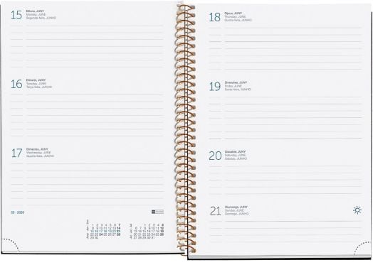 Страници за лична информация, 2-годишен календар, допълнителни листа за бележки и адреси / телефони.