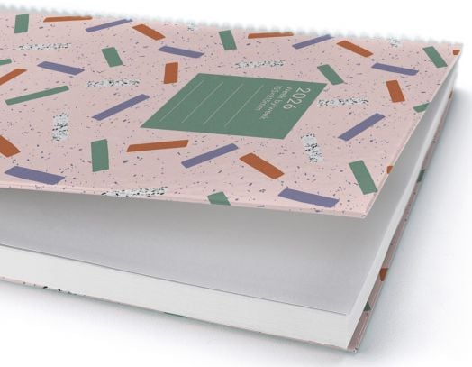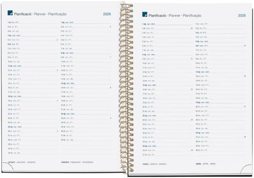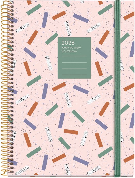 Класически бележник - органайзер Miquelrius Grafica Confeti за 2026 година с твърди корици и годишно планиране — една седмица на две страници.