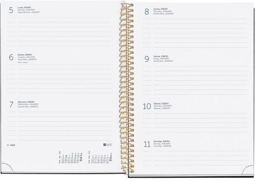 Страници за лична информация, 2-годишен календар, допълнителни листа за бележки и адреси / телефони.