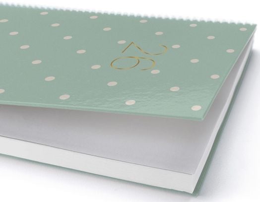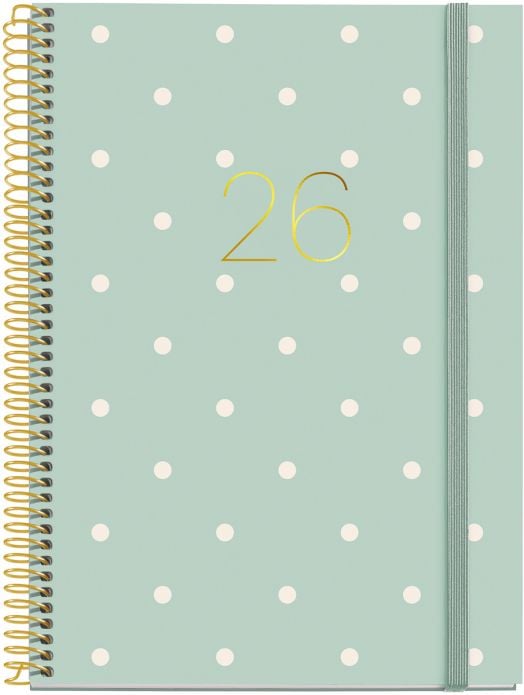 Класически бележник - органайзер Miquelrius Grafica Polka Dots за 2026 година с твърди корици и годишно планиране — една седмица на две страници.