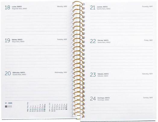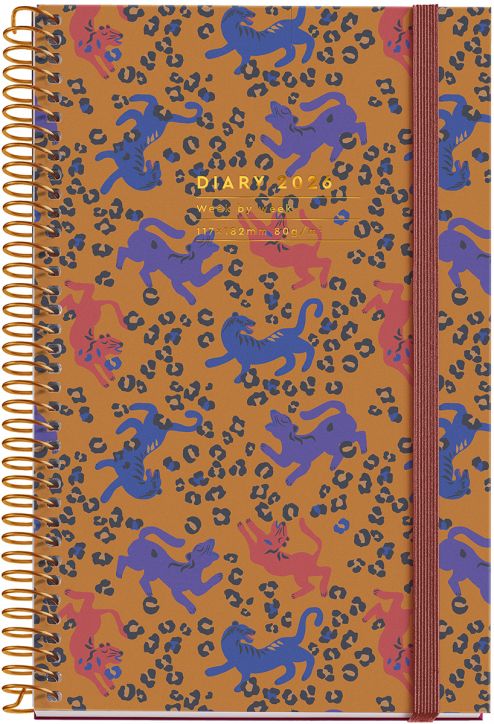 Класически бележник - органайзер Miquelrius Natura Leopard за 2026 година със спирала и годишно планиране — една седмица на две страници.