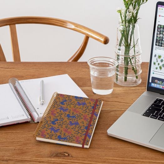 Класически бележник - органайзер Miquelrius Natura Leopard Slim за 2026 година със спирала и годишно планиране — една седмица на две страници.