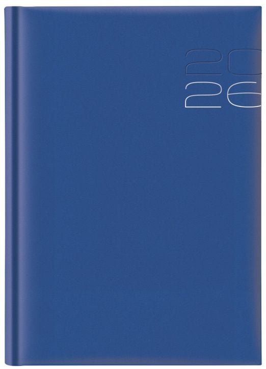 Син тефтер-органайзер Lediberg Matra с мултинационално тяло (осем езика, включително български) за 2026 година в A5 размер.