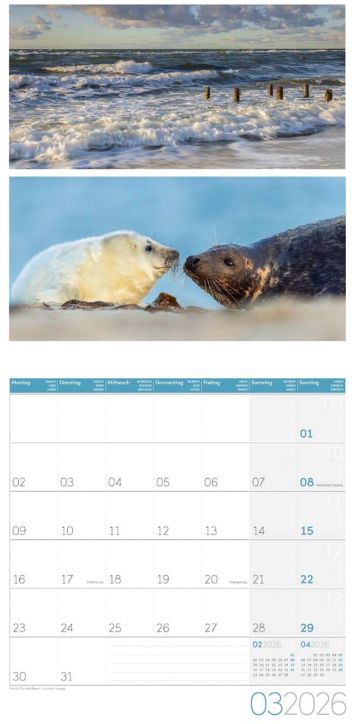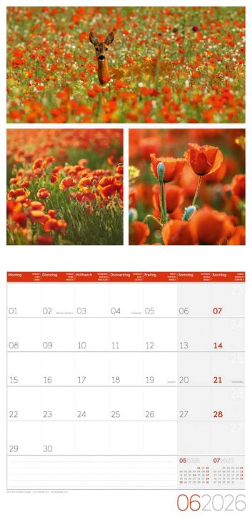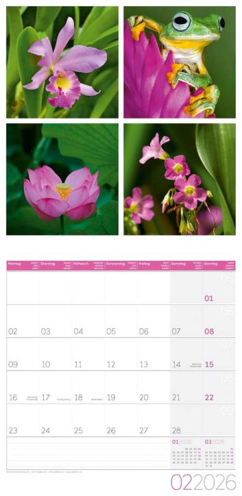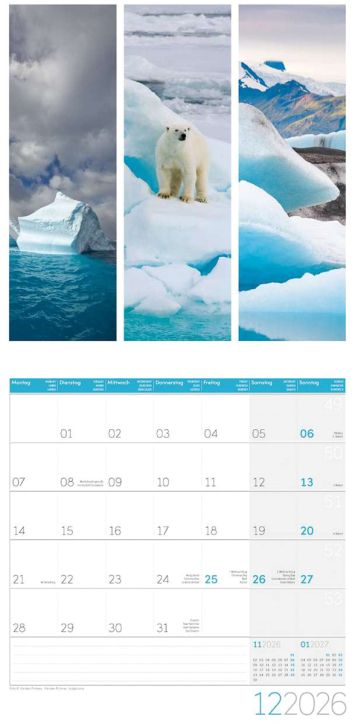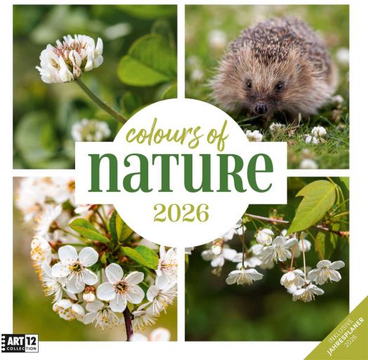 Вертикален стенен календар Ackermann за 2026 година с 12 впечатляващи изображения на тема: Colours of Nature - Цветове от природата.