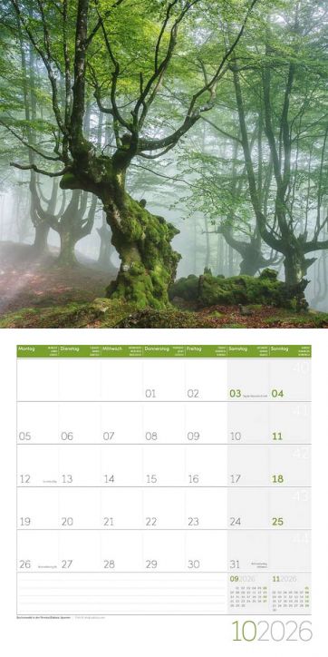 Покрити със сняг, блестящи в нежно зелено, цъфтящи или в есенни цветове: дърветата са впечатляващи, винаги привличащи вниманието сред природата по всяко време на годината. Фактът, че те също са отговорни за осигуряването на достатъчно кислород на планетата, ги прави толкова ценни за нас. Дванадесетте мотива на този календар показват дърветата в целия им блясък и са истински дарители на сила в ежедневието.