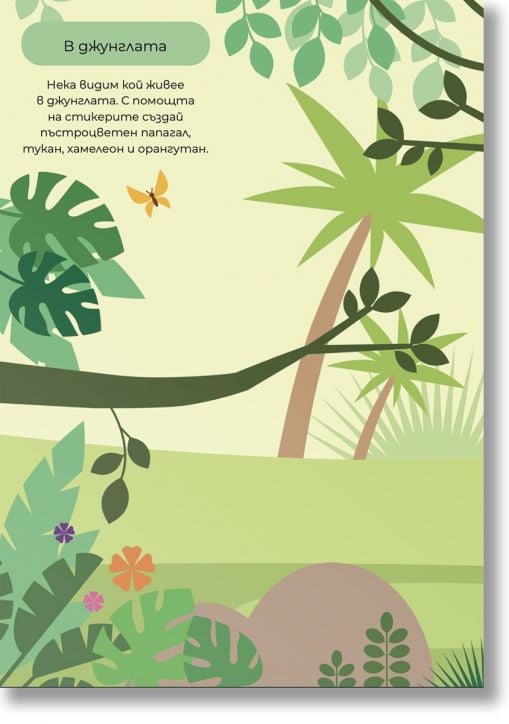 Пъстроцветен папагал, тукан, хамелеон, лъв, крокодил или орангутан – с помощта на „Диви животни“ от поредицата „Стикерни зверчета“ малките любители на природата могат да създават различни животни и да ги разполагат на страниците.