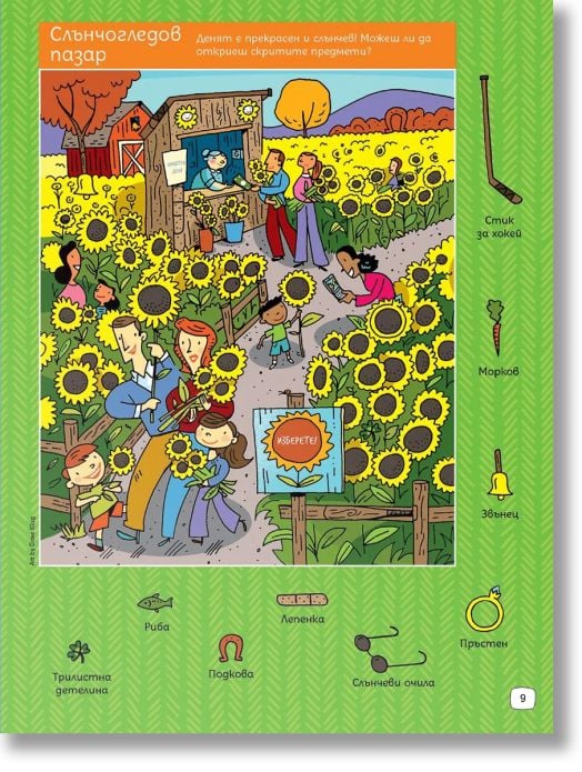 Освен скритите картинки, книжката предлага и разнообразни занимания: