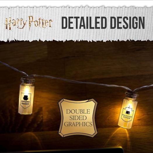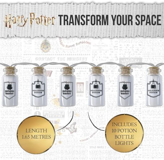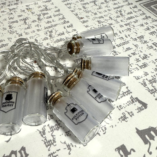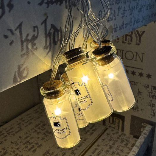 Внесете магия в дома си с тези очарователни лампички Хари Потър във форма на мини стъклени бутилчици за отвара, подредени като стилен светещ гирлянд.