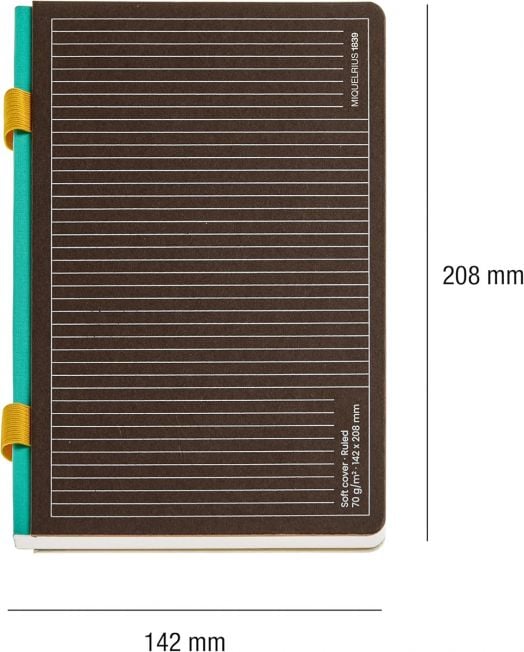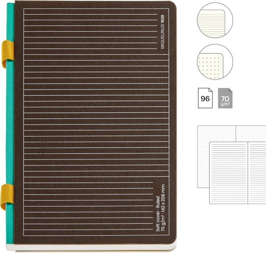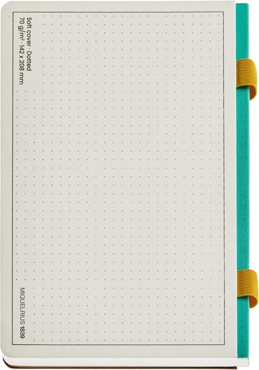 Тефтер Miquelrius B2B Doble Gris A5 с комбинирано съдържание - 86 линирани листа с широки редове и 10 листа на точки, където точките са разположени в квадратна точкова мрежа с интервали 5 х 5 мм.