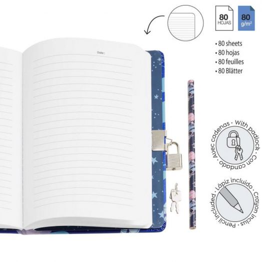 Дневникът се затваря с метален катинар и включва два ключа, за да останат тайните наистина защитени.