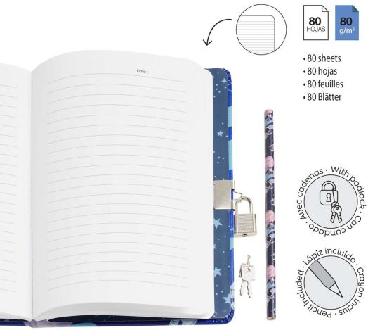 Дневникът се затваря с метален катинар и включва два ключа, за да останат тайните наистина защитени.