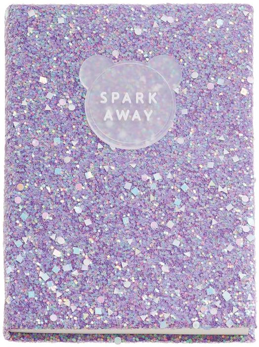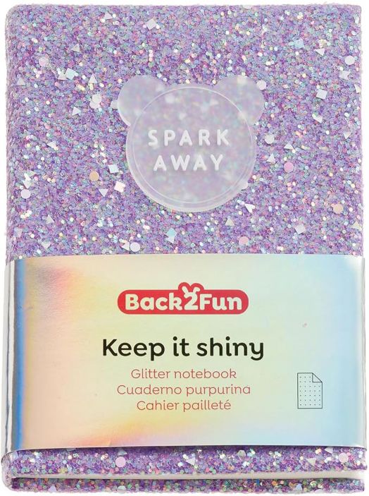 Блестящ тефтер Miquelrius Back2Fun Spark Away с твърди брокатени корици в лилаво, който може да побере в себе си всички ваши идеи