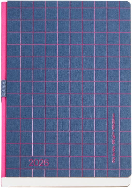 Класически бележник - органайзер Miquelrius Back To Basic Lineas Marino за 2026 година с полутвърди картонени корици и годишно планиране — един ден на страница (събота и неделя делят една страница).