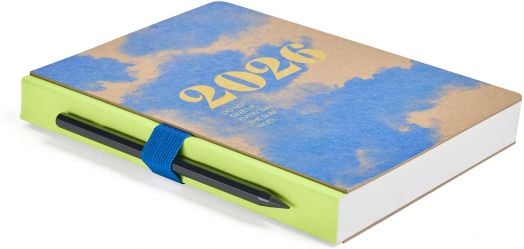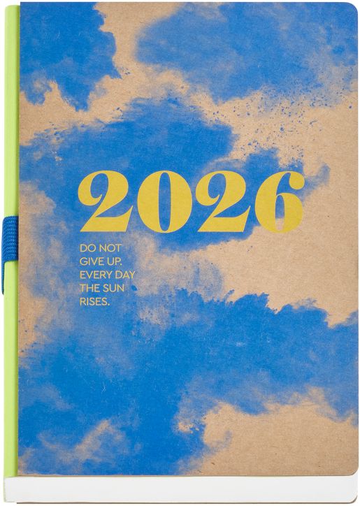 Класически бележник - органайзер Miquelrius Back To Basics Kraft Nubes за 2026 година с полутвърди картонени корици и годишно планиране — един ден на страница (събота и неделя делят една страница).