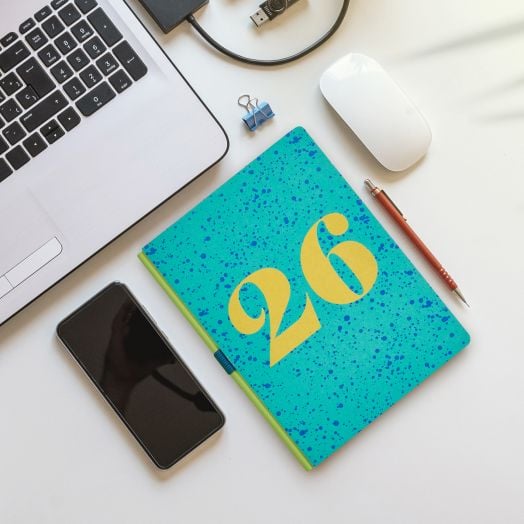 Класически бележник - органайзер Miquelrius Back To Basics Kraft Splash за 2026 година с полутвърди картонени корици и годишно планиране — един ден на страница (събота и неделя делят една страница).