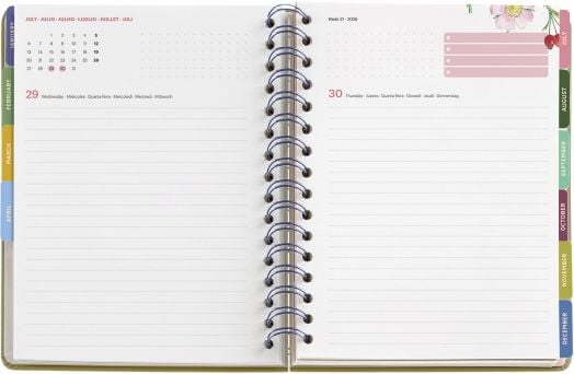 Всеки ден от седмицата е на отделна страница и с достатъчно място за отбелязване на задачи, срещи и напомняния (събота и неделя делят една страница)