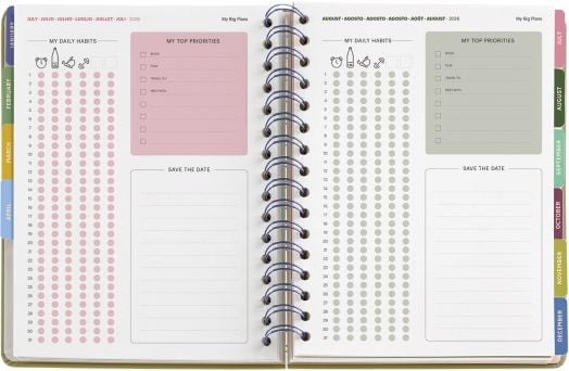 Съдържа също полезни страници за следене на здравословни навици, приоритети и важни дати/събития, два листа с тематични стикери, с които можете да добавите личен стил и удобство в планирането