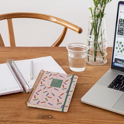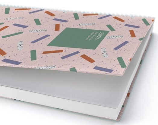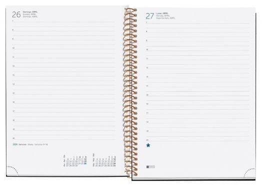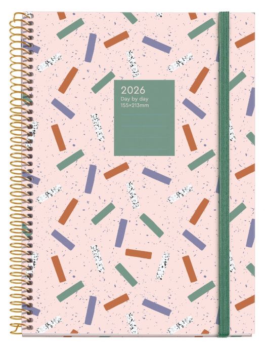 Класически бележник - органайзер Miquelrius Grafica Confeti за 2026 година с твърди корици и годишно планиране — един ден на страница (събота и неделя делят една страница).