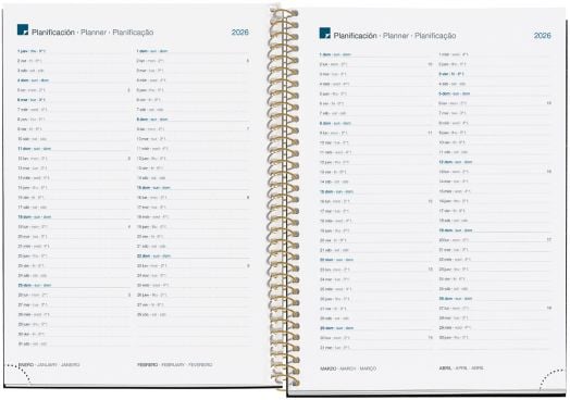 Страници за лична информация, 2-годишен календар, допълнителни листа за бележки и адреси / телефони.