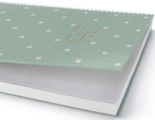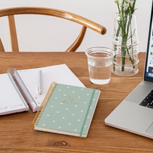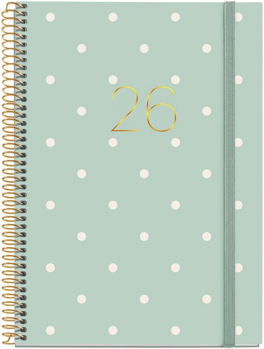 Класически бележник - органайзер Miquelrius Grafica Polka Dots за 2026 година с твърди корици и годишно планиране — един ден на страница (събота и неделя делят една страница).