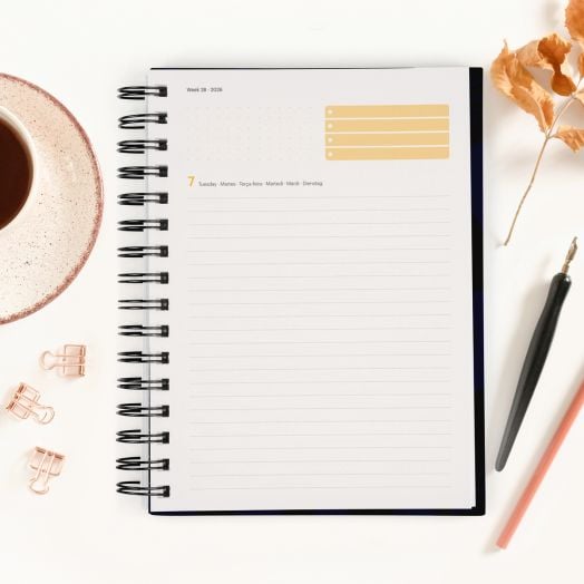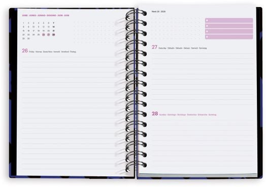 Всеки ден от седмицата е на отделна страница и с достатъчно място за отбелязване на задачи, срещи и напомняния (събота и неделя делят една страница)