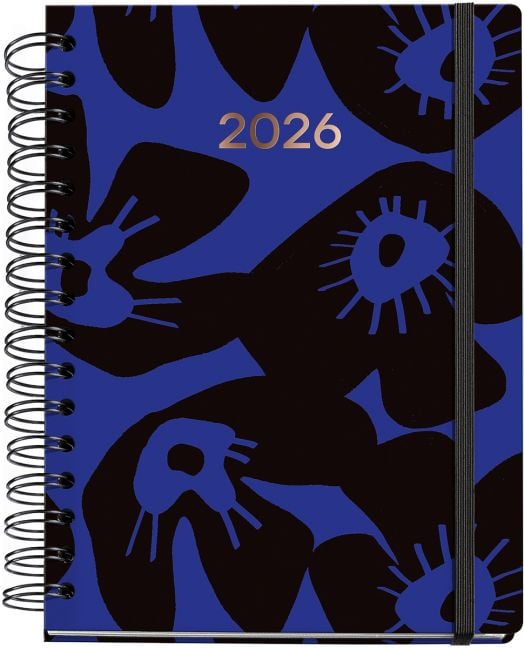Класически бележник - органайзер Miquelrius Marf Organic Midnight Bloom за 2026 година с твърди корици, спирала и годишно планиране — един ден на страница (събота и неделя делят една страница).