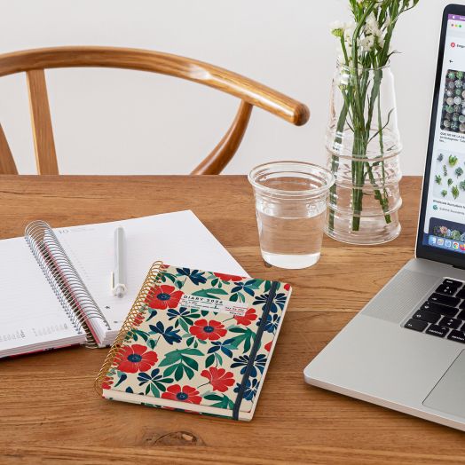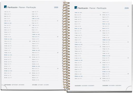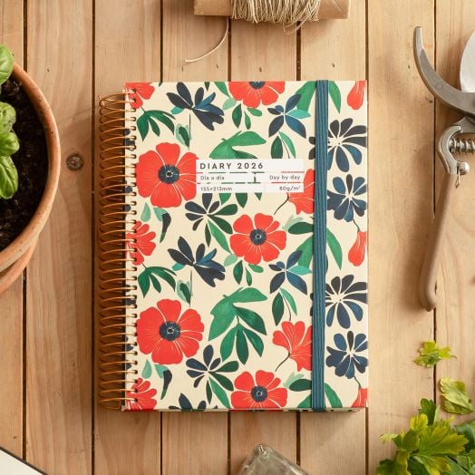 Класически бележник - органайзер Miquelrius Natura Anémona за 2026 година със спирала и годишно планиране — един ден на страница (събота и неделя делят една страница).