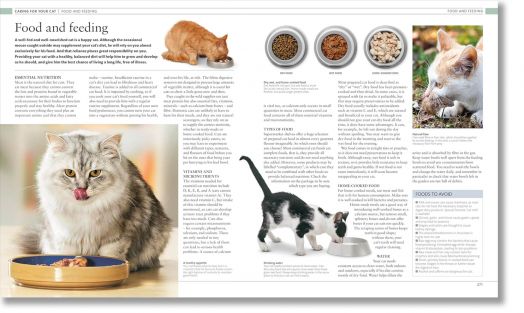 -How to care for your cat, including how to Prepare for arrival, essential equipment, vet check-ups, food and feeding, Grooming and hygiene and training your cat.