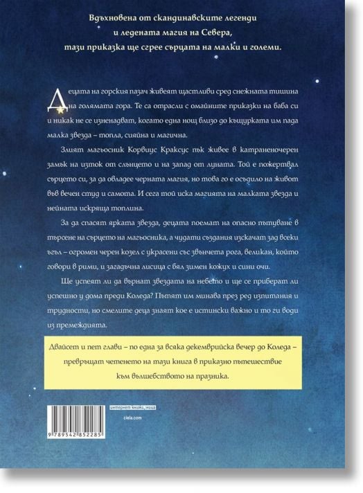Двайсет и пет глави – по една за всяка декемврийска вечер до Коледа – превръщат четенето на тази книга в приказно пътешествие към вълшебството на празника.