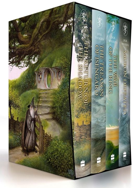 Third in a series of hardcover boxed sets celebrating the literary achievement of Christopher Tolkien, featuring double-sided dustjackets. Set 3 contains The Return of the Shadow, The Treason of Isengard, The War of the Ring, and Sauron Defeated (Books 6-9 of The History of Middle-earth).