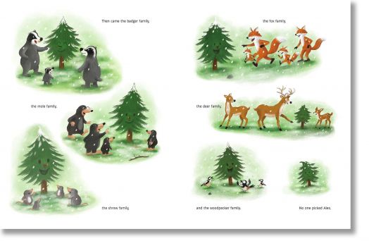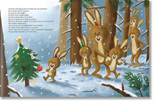 Alex the Christmas tree is teased because he is the smallest fir tree in the tree nursery. He can't hold as many ornaments, he can't stand as tall . . . Alex isn't sure any animal family will want him as their Christmas tree. When the families come to choose their fir tree, Alex isn't noticed at first. But then Selma, the smallest rabbit of all, discovers him. The rabbit family takes Alex home, and they all celebrate and sing together-even Alex, the littlest Christmas tree with the biggest holiday spirit!