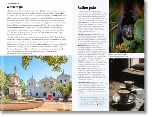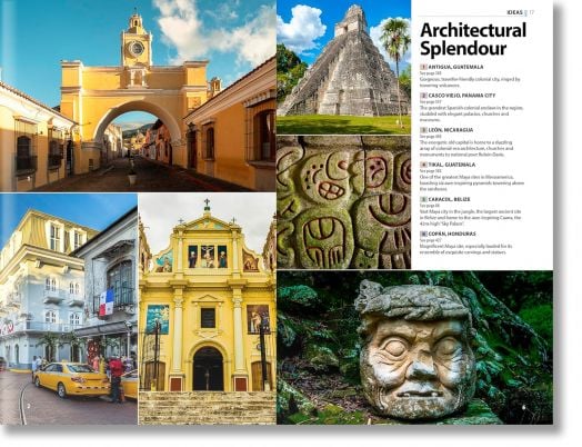 - Must-See pick – a curated selection of not-to-miss sights as chosen by our authors - Day of the Dead in Santiago, Las Ta Blas Carnival in Panama, Maya ruins, rafting in Panama, diving in the Bay Islands, jaguar-spotting in Belize, Guatemala's western highlands, Garífuna villages in Honduras, León, Tikal;