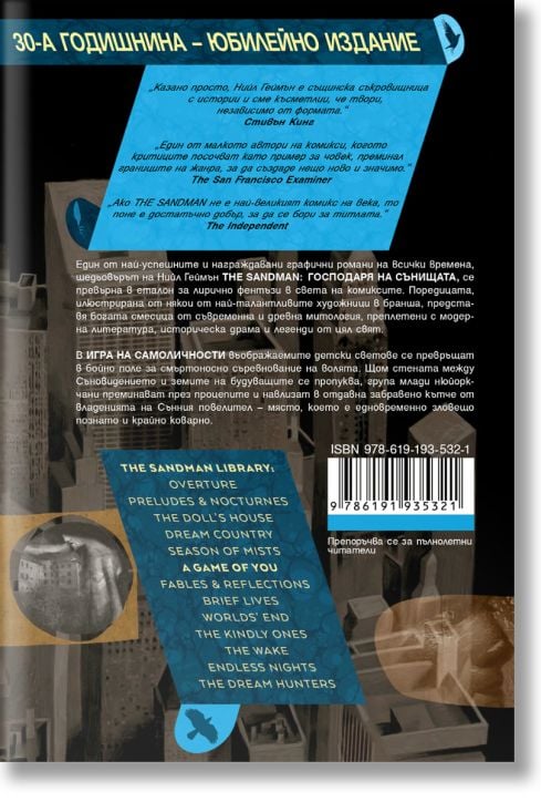 Един от най-успешните и награждавани графични романи на всички времена, шедьовърът на Нийл Геймън The Sandman: Господаря на сънищата, се превърна в еталон за лирично фентъзи в света на комиксите. Поредицата, илюстрирана от забележителен набор от някои от най-талантливите художници в бранша, представя богата смесица от съвременна и древна митология, преплетени с модерна литература, историческа драма и легенди от цял свят.
