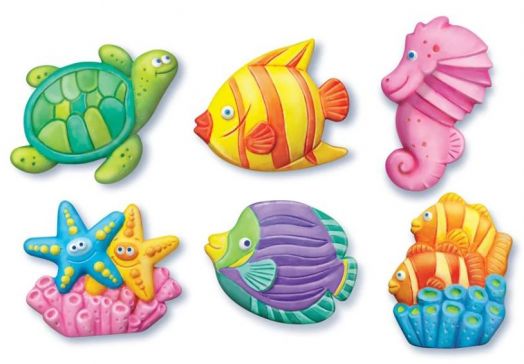 Обичате да създавате нови и интересни неща? Обичате да рисувате и украсявате? Направете 12 сладки отливки и магнити за хладилник или значки с Отливки и магнити - Морски свят!