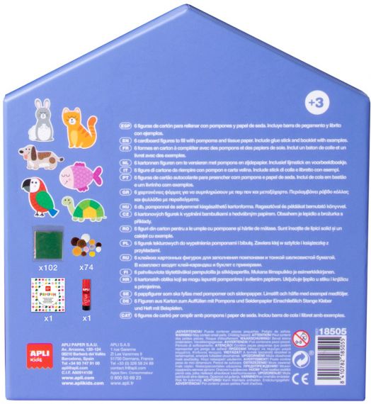 Забавен детски творчески комплект от серията „My First“ на Apli, с който могат да се създават цветни картини с помпони във формата на домашни любимци.