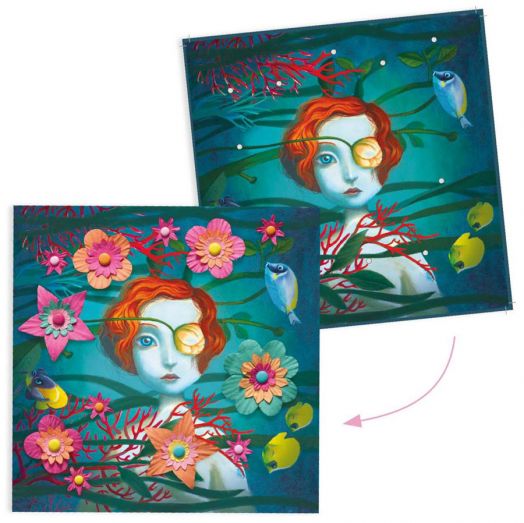 Създайте свои собствени триизмерни портрети с този интерактивен арт проект на Djeco, който превръща обикновени картини в красиви 3D портрети и сцени с женски фигури.