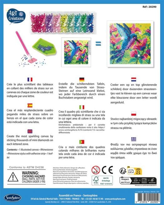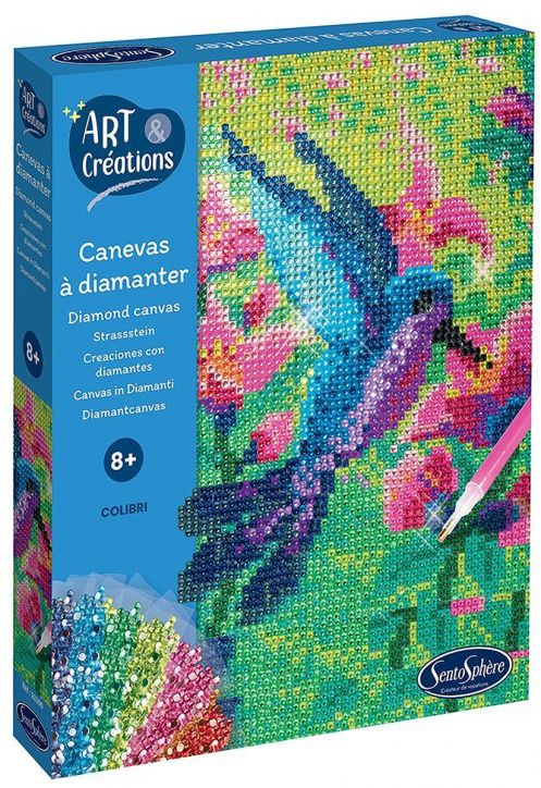 Творчески комплект Sentosphere за "рисуване" с диаманти „Колибри“, включващ платно-канава и цветни камъчета - едно голямо забавление за всяко хлапе.