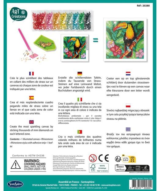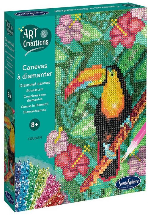 Творчески комплект Sentosphere за "рисуване" с диаманти „Тукан“, включващ платно-канава и цветни камъчета - едно голямо забавление за всяко хлапе.