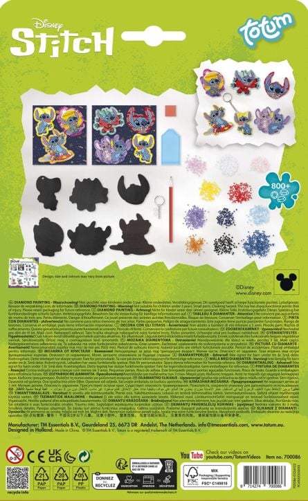 С този творчески комплект на Totum всеки малък сръчко ще може да декорира и украси по свой вкус тематични магнитчета и ключодържател от Disney - Stitch.